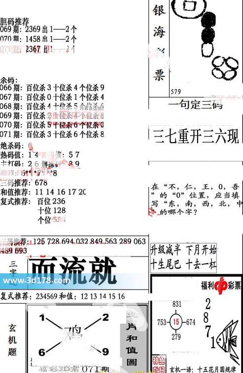 071期:百位杀3 十位杀6 个位杀8