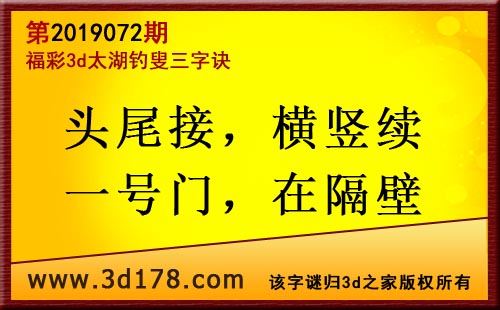 3d第19072期太湖字谜:头尾接,横竖续,一号门,在隔壁