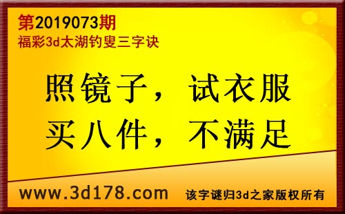 3d第19073期太湖字谜:照镜子,试衣服,买八件,不满足