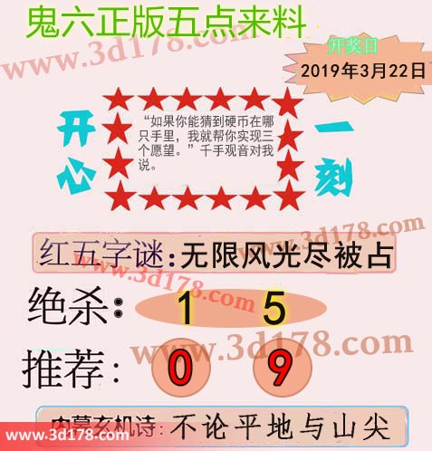 福彩3d第2019074期鬼六五点来料: