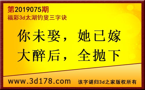3d第19075期太湖字谜:你未娶,她已嫁,大醉后,全抛下