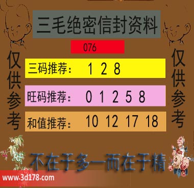 福彩3d第19076期三毛绝密信封资料图详解: