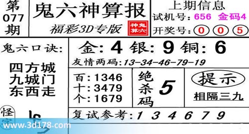 3d第19077期鬼六神算报为您推荐鬼六口诀: