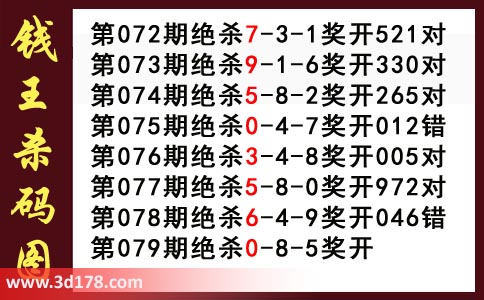该钱王杀码图由3d之家3d图库频道原创,仅供彩民参考,温馨提供。