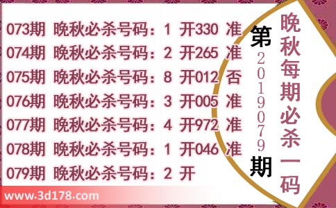 079期 晚秋必杀号码:2 开