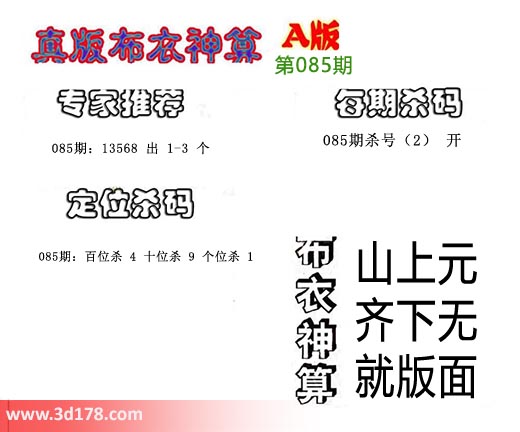 布衣神算:山上元,齐下无,就版面