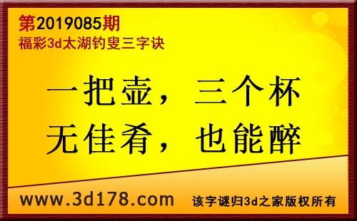 3d第19085期太湖字谜:一把壶,三个杯,无佳肴,也能醉