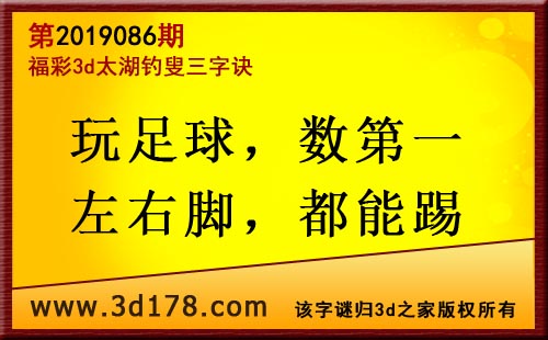 3d第19086期太湖字谜:玩足球,数第一,左右脚,都能踢