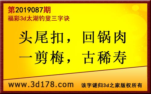 3d第19087期太湖字谜:头尾扣,回锅肉,一剪梅,古稀寿
