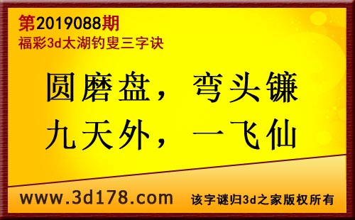 3d第19088期太湖字谜:圆磨盘,弯头镰,九天外,一飞仙