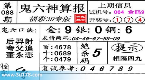 3d第19088期鬼六神算报为您推荐鬼六口诀: