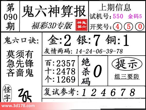 3d第19090期鬼六神算报为您推荐鬼六口诀: