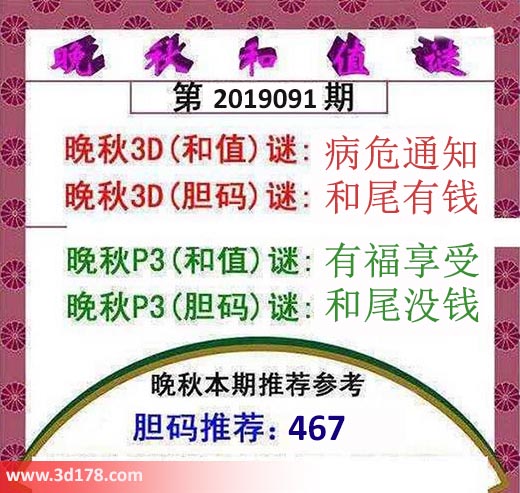 晚秋3D(和值)谜:病危通知
