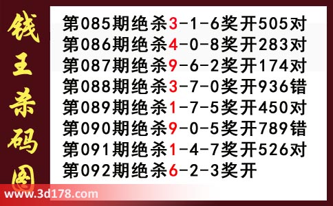 近期3d钱王杀码具体详情: