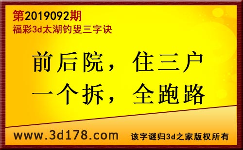 3d第19092期太湖字谜:前后院,住三户,一个拆,全跑路