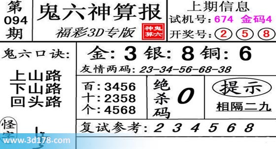 3d第19094期鬼六神算报为您推荐鬼六口诀: