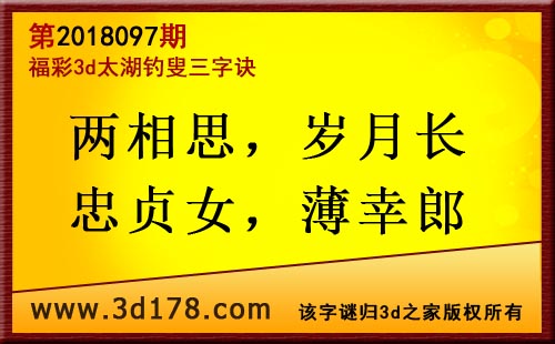 3d第19097期太湖字谜:两相思,岁月长,忠贞女,薄幸郎