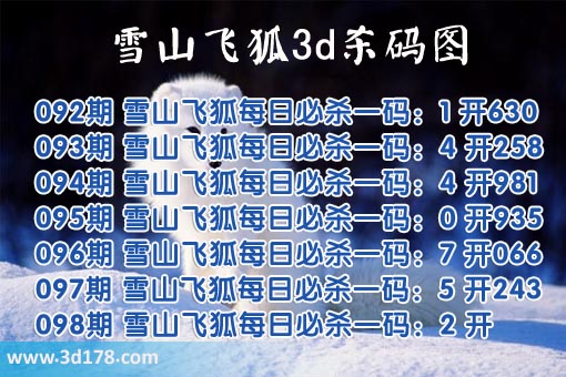 该雪山飞狐杀码图由3d之家3d图库频道原创,仅供彩民参考,温馨提供。