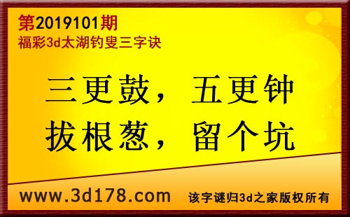3d第19101期太湖字谜:三更鼓,五更钟,拔根葱,留个坑