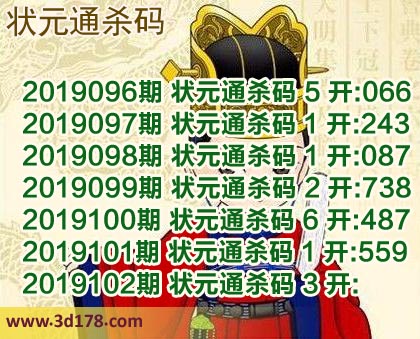 2019102期 状元通杀码 3 开: