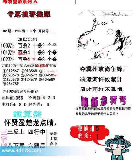 福彩3d第2019102期布衣皇帝A版布衣专家独家推荐: