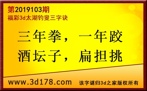 3d第19103期太湖字谜:三年拳,一年跤,酒坛子,扁担挑