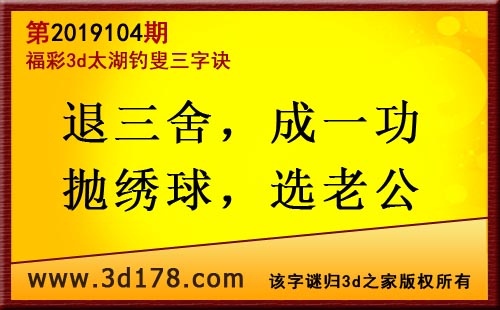 3d第19104期太湖字谜:退三舍,成一功,抛绣球,选老公
