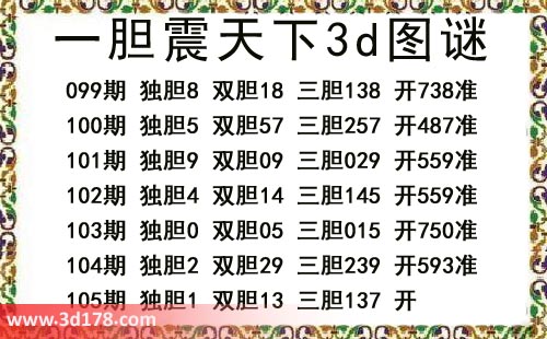 本期一胆震天下3d图谜: