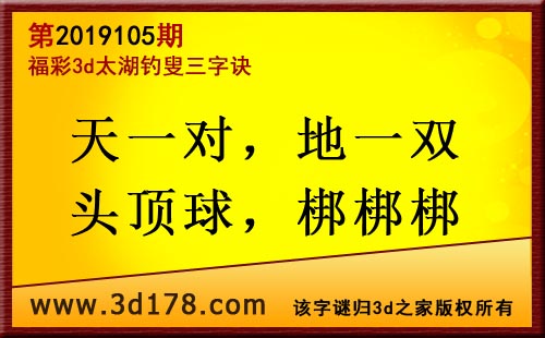 3d第19105期太湖字谜:天一对,地一双,头顶球,梆梆梆