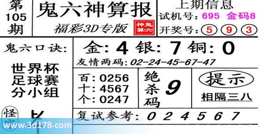 3d第19105期鬼六神算报为您推荐鬼六口诀: