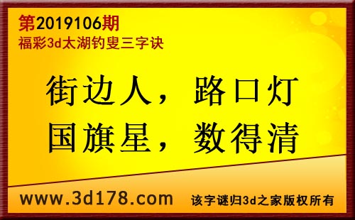 3d第19106期太湖字谜:街边人,路口灯,国旗星,数得清
