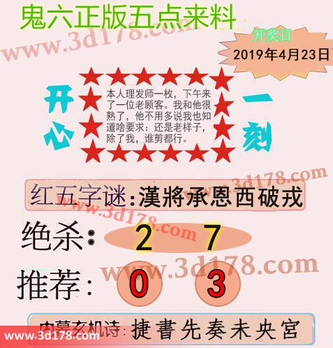 福彩3d第2019106期鬼六五点来料: