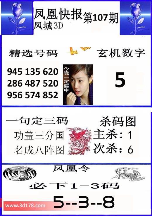 福彩3d凤凰快报图第19107期精选号码推荐: