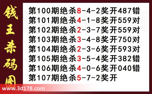 近期3d钱王杀码具体详情: