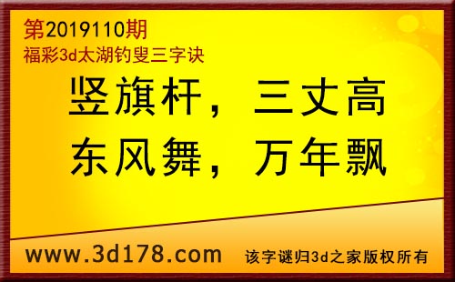3d第19110期太湖字谜:竖旗杆,三丈高,东风舞,万年飘