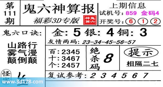 3d第19111期鬼六神算报为您推荐鬼六口诀: