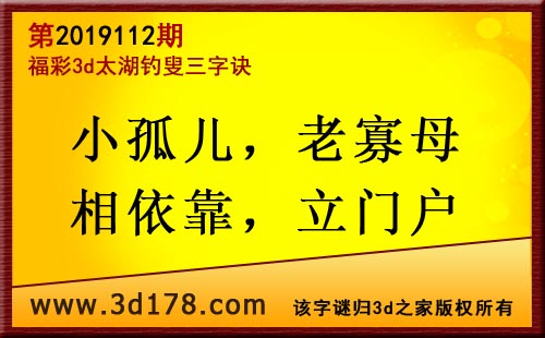 3d第19112期太湖字谜:小孤儿,老寡母,相依靠,立门户