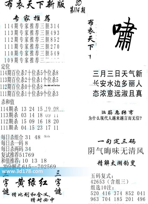 福彩3d第2019114期福彩3d布衣天下新版:
