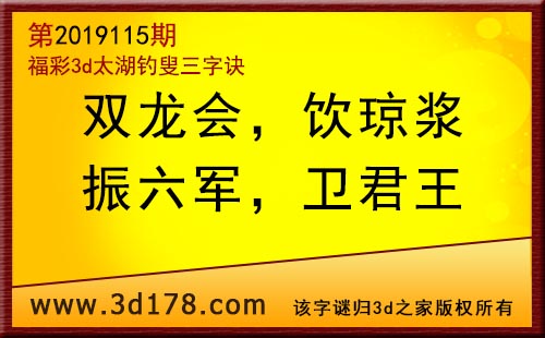 3d第19115期太湖字谜:双龙会,饮琼浆,振六军,卫君王