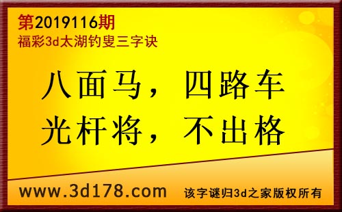 3d第19116期太湖字谜:八面马,四路车,光杆将,不出格