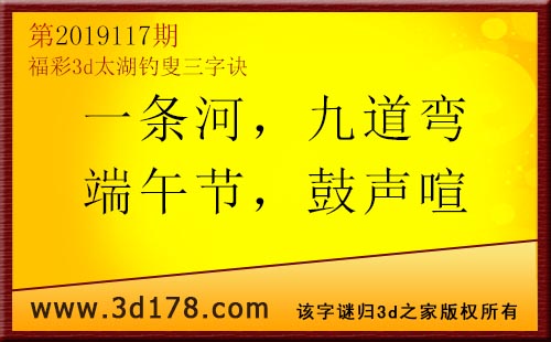 3d第19117期太湖字谜:一条河,九道弯,端午节,鼓声喧