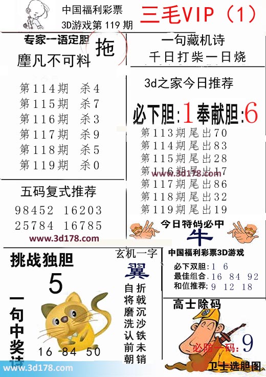 3d第2019119期三毛VIP详解: