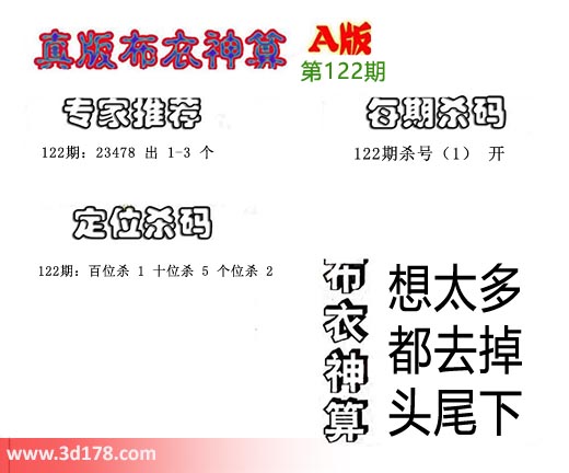 3d之家布衣图库之布衣神算图第2019122期详解: