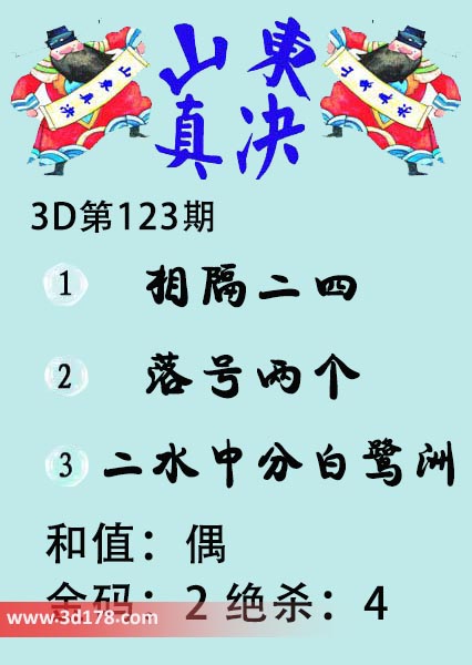 福彩3d第19123期山东真诀图如下所示: