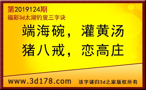 3d第19124期太湖字谜:端海碗,灌黄汤,猪八戒,恋高庄