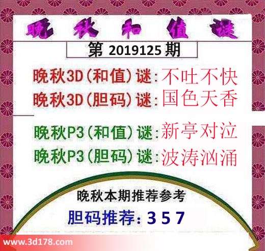 晚秋3D(胆码)谜:国色天香