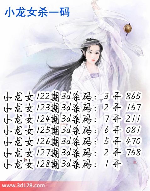小龙女122期3d杀码:3 开 865