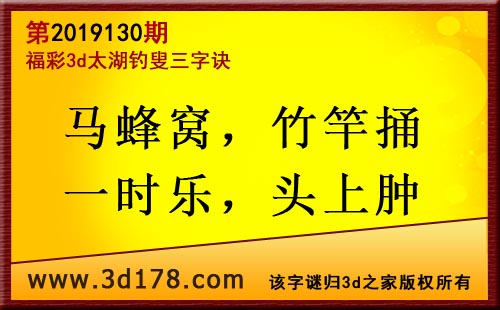 3d第19130期太湖字谜:马蜂窝,竹竿捅,一时乐,头上肿