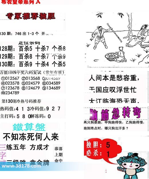 福彩3d第2019130期布衣皇帝A版布衣专家独家推荐:
