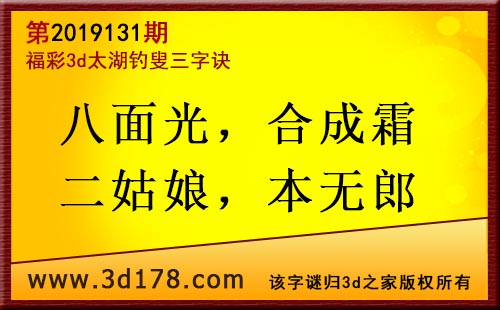 3d第19131期太湖字谜:八面光,合成霜,二姑娘,本无郎